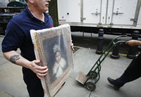 Employees of Cirker-Hayes Fine Art and Antique Storage removed paintings from the Berry-Hill Galleries on East 70th Street in Manhattan Tuesday.