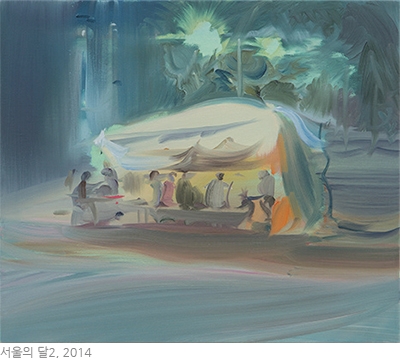 이제 작가는그 동안 도시공간 속 자신이 거주하는 주변의 풍경과 소소한 일상의 다채로운 장면들을 담아왔다. 연장선상에있는 이번 전시는 도시를 소재로 지난 3년 동안 작업해 온 신작 회화들을 발표한다. 뉴욕과 서울, 제주를 오가면서 경험한 낯설음과 익숙함의 풍경을 다룬드로잉 연작을 비롯해 특히, 밤과 새벽 시간의 도시풍경을 다룬 작업을 통해 빛이 사라진 공간 속에서인간과 사물의 자리나 흔적들로부터 번지는 이 세계의 온기를 들여다 보고, 그것을 통해 유토피아나 디스토피아도아닌 결국 매일을 살아가는 모든 인간들의 삶의 의지를 표현한다.
