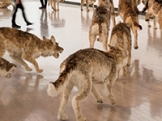 <Head On>작품설치 전경, 2015, 99마리의 복제 늑대, 유리창, 독일은행 콜렉션,