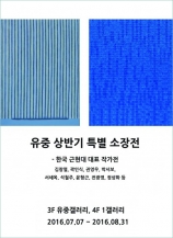 유중 상반기 특별 소장전 유중 상반기 특별 소장전이 2016년 7월 7일부터 2016년 8월 31일까지 유중아트센터 3층 유중갤러리와 4층 1갤러리에서 진행됩니다.김창열, 곽인식, 권영우, 박서보, 서세옥, 석철주, 윤형근, 전광영, 정상화 등 한국 근현대 미술을 대표하는 작가들로 구성된 유중 상반기 특별 소장전에 많은 관심 부탁 드립니다.