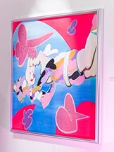 《Essence of Love》에서 센가는 사랑이 어떻게 다양한 감정으로 구체화되는지를 조망한다. 기쁨과 설렘, 불안, 그리고 연약함까지—그는 사랑을 고정된 이상으로 묘사하기보다는, 진정한 인간적 연결 속에서 발생하는 능동적이고 생성적인 에너지로 접근한다. 전시 전반에 등장하는 오리지널 캐릭터 FiNGA는 이러한 감정의 복합성을 유쾌하면서도 상징적으로 담아낸다.