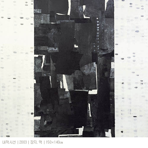 여기에 경쾌하면서 때로는 육중한 붓자국이나 얼룩이 같은 색조로 또는 짙고 옅음의 변화를 가지면서 반복적으로 나열되면서 사라졌다 다시 나타나고 또다시 사라진다. 그것은 화면에서 형태로서 한 위치를 점유하며 고정된 것이 아니라 자유롭게 소요하면서 화면바탕에서 우주의 폭과 깊이를 활성화시키고 있다. 이 붓자국이나 얼룩은 현존재에서 일어나는 일상적 감정이 투영된 형식이면서, 다른 한편으로는 고려청자나 조선백자, 민화의 이미지를 연상시키면서 민족적 감성으로 이어준다. 따라서 이것은 처음에 화면에서 언뜻 형태로 보이다가 이내 사라짐과 함께 그것에 함축된 감성이 풀려져 나오면서 감성과 감성의 일련의 고리로 환원된다. 우리는 이 일련의 감성의 고리를 따라 무한한 시간과 공간에서 자유롭게 유희한다. 그리고 어느 듯 개체의 감성을 초월하여 역사적 보편적 감성을 체득하면서 우주적 존재로 거듭 탄생하고 있음을 깨닫게 되는 것이다. 결과적으로 작가는 작품을 통해 인간의 존재에 대한 철학적 물음을 회화적으로 제시한다고 할 수 있다. 그것은 우리 현존재의 인간은 생물학적인 인간이 아니라, 역사와 문화와 우주의 전과정을 함축하고 있는 총체로서 인류학적인 인간임을 확언하고 있는 것이다.