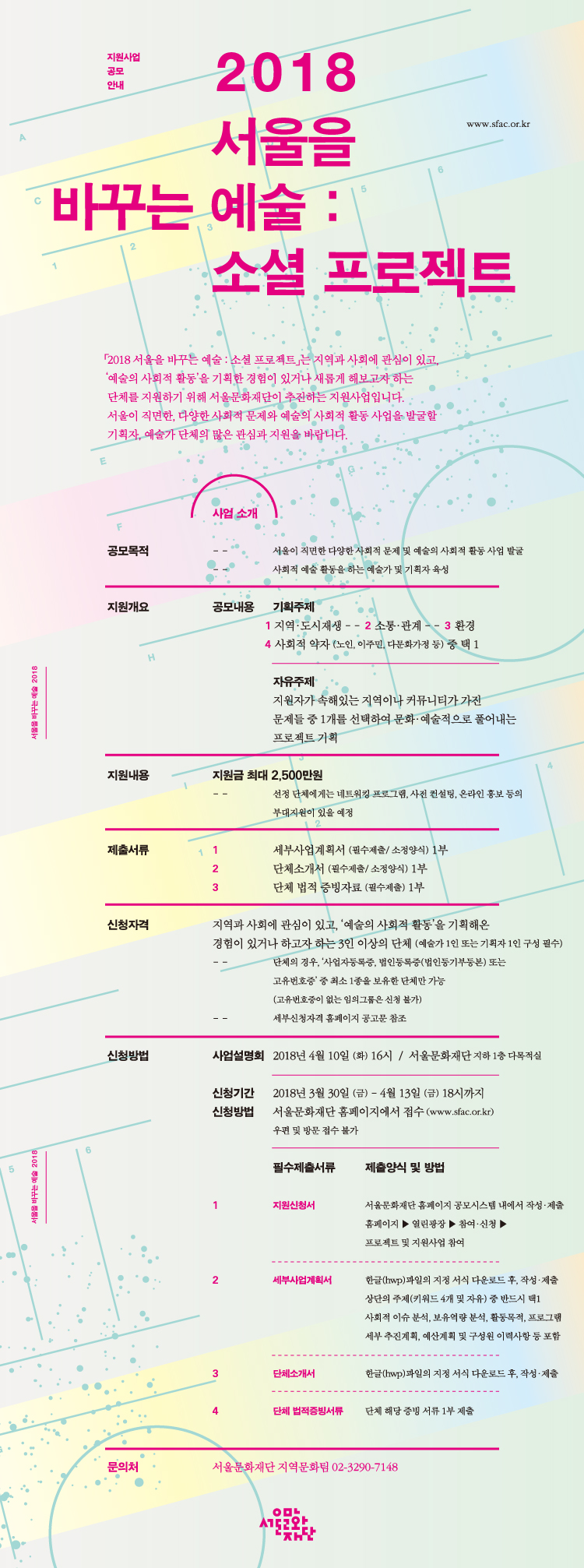 <2018 서울을 바꾸는 예술: 소셜프로젝트> 공모사업을 안내드립니다. ^^